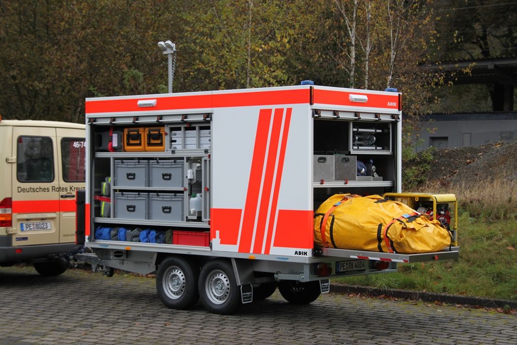 Der Geräteanhänger Betreuung kann zur Versorgung von bis zu 100 Einsatzkräften genutzt werden. Zusätzlich besteht die Möglichkeit, Betroffene zu betreuen bzw. unterzubringen.